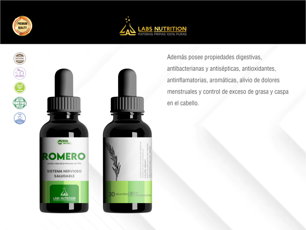 -Propiedades digestivas: El aceite de romero se ha utilizado para mejorar la digestión y aliviar problemas digestivos como la indigestión y los espasmos estomacales.