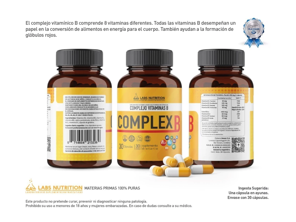 El complejo vitamínico B comprende ocho vitaminas diferentes. Todas las vitaminas B desempeñan un papel en la conversión de alimentos en energía para el cuerpo. También ayudan a la formación de glóbulos rojos.